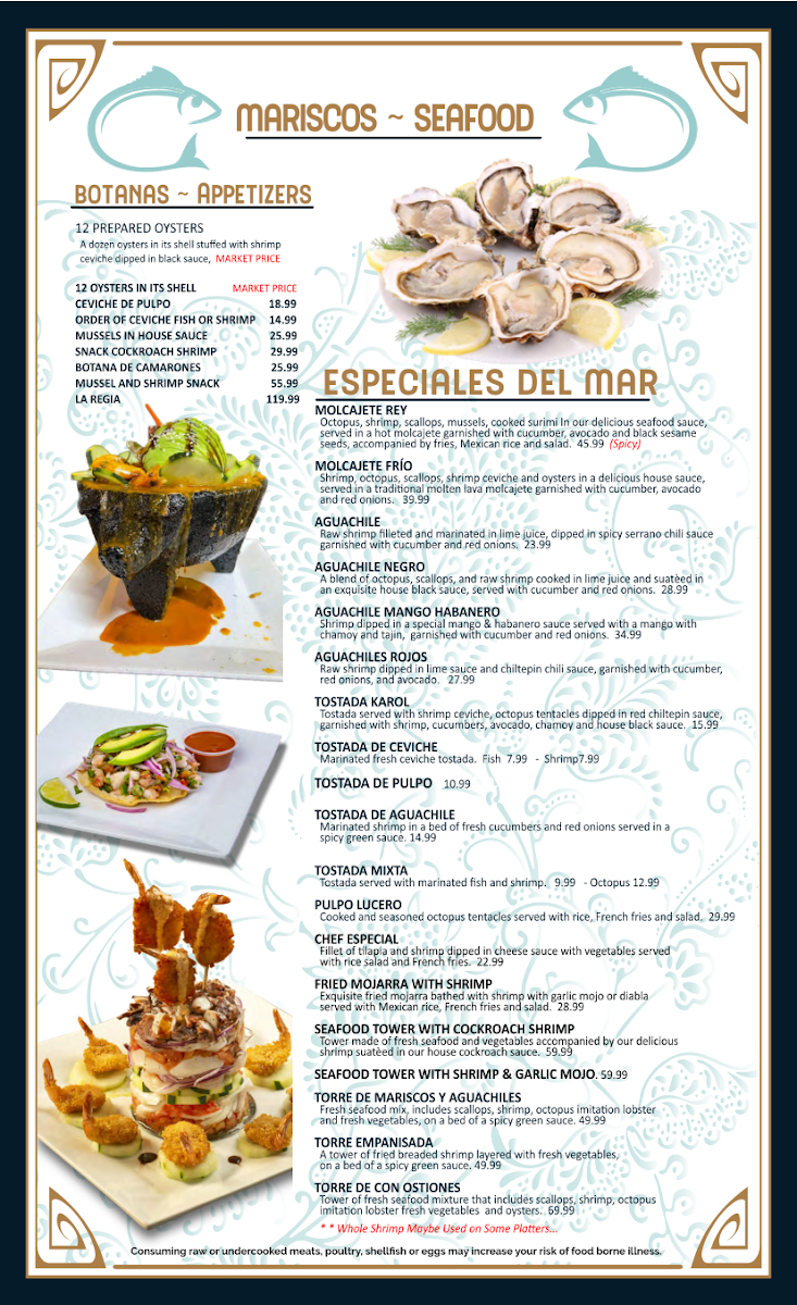 The breakfast offerings, including Huevos Con Chorizo and Homemade Chilaquiles, are perfect for those who enjoy a satisfying morning meal. The Especiales Del Mar (Seafood Specials) bring an incredible variety of dishes, including Fried Mojarra With Shrimp and the refreshing Shrimp Cocktail.